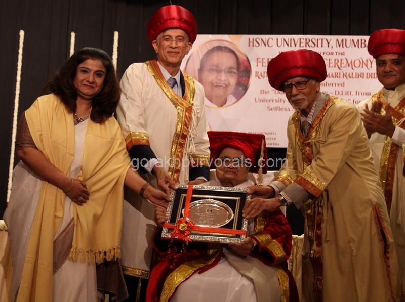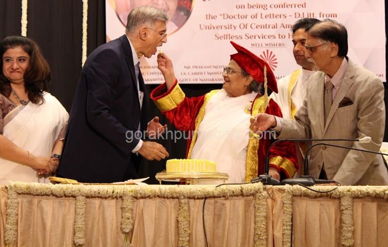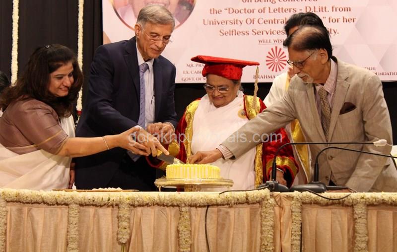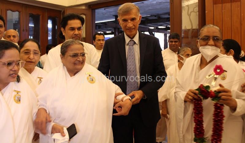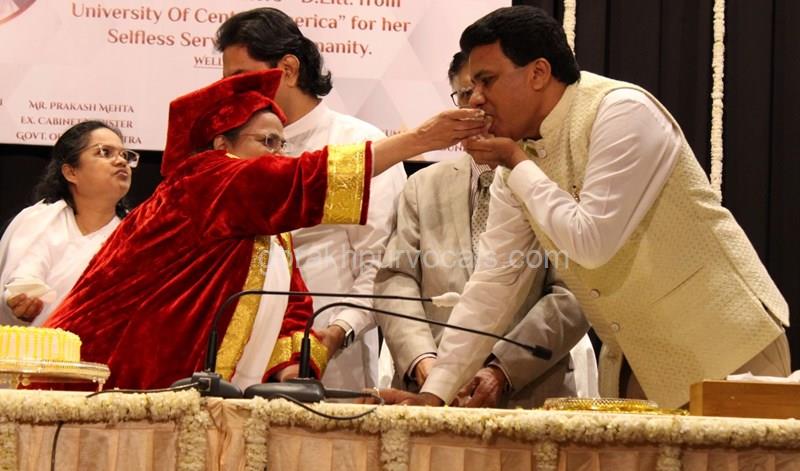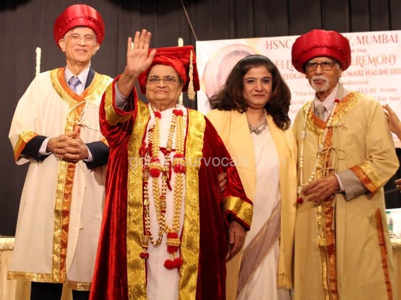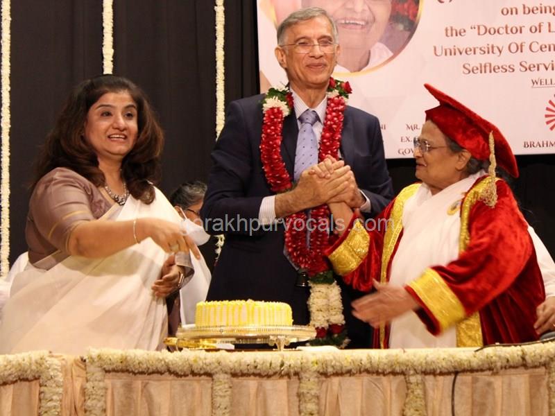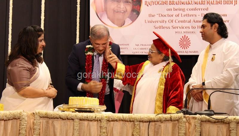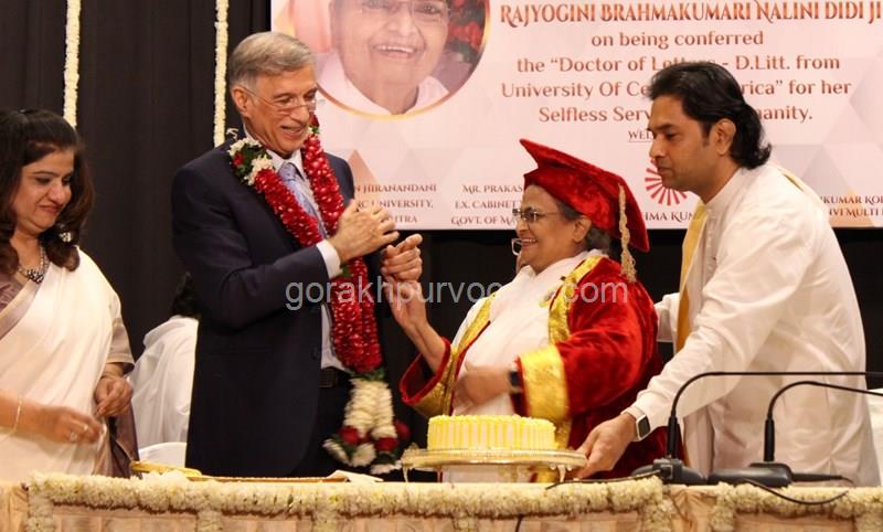 Dr. Niranjan Hiranandani Provost, HSNC University felicitates Rajyogini BrahmaKumari Nalini Didi ji on being conferred Doctorate Degree