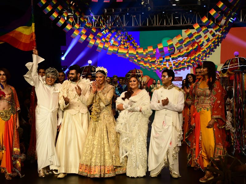 The Taali actress celebrated inclusivity in her latest appearance on the ramp for the Bombay Times Fashion Week. Sushmita Sen donned a heavy yet stunning, traditional outfit designed by Rohit Verma, walking the ramp with her Taali co-stars to celebrate inclusivity and the LGBTQ community.