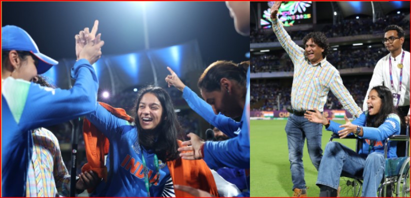 टूर्नामेंट के दौरान बांग्लादेश के खिलाफ मैच में फील्डिंग करते समय चोटिल होने के कारण प्रतिका रावल दुर्भाग्यपूर्ण ढंग से वर्ल्ड कप से बाहर हो गई थीं। हालांकि, जीत के बाद मैदान पर जो दृश्य देखने को मिला, वह भारतीय क्रिकेट के सबसे भावुक पलों में से एक था। वर्ल्ड कप ट्रॉफी लेकर पूरी टीम जब जश्न मना रही थी, तब प्रतिका रावल व्हीलचेयर पर मैदान में आईं। अपनी टीम की ऐतिहासिक जीत से अभिभूत, रावल की खुशी साफ झलक रही थी। उनकी टीम की साथियों ने तुरंत उन्हें व्हीलचेयर से उठाकर अपने बीच में खड़ा किया। इस पल, दर्द और चोट को भुलाकर, प्रतिका ने व्हीलचेयर छोड़ दी और साथी खिलाड़ियों के साथ खुशी से झूम उठीं और जीत का जश्न मनाया। खिलाड़ियों ने उन्हें घेरकर डांस किया, जो दर्शाता है कि टीम ने प्रतिका की भागीदारी और शुरुआती योगदान को कितना महत्व दिया। प्रतिका रावल, व्हीलचेयर पर आईं और उन्होंने वर्ल्ड कप हासिल करने पर खुशी जताई। इसी बीच वो खड़े होकर भारतीय प्लेयर्स के साथ खुशी से झूमीं।
