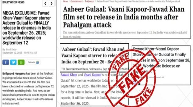 फिल्म अबीर गुलाल को लेकर चल रही खबरें कि यह 26 सितंबर को भारत में रिलीज हो रही है, पूरी तरह फर्जी हैं। PIB ने खुद इस बात की पुष्टि की है कि फिल्म को भारत में रिलीज करने की कोई अनुमति नहीं दी गई है।